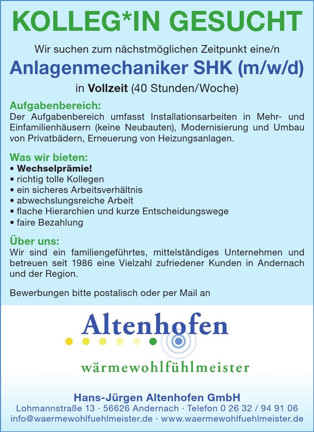 Sanitär-/Heizungs-/Haustechnik-Experte in Andernach